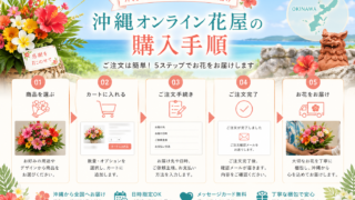 沖縄オンライン花屋の購入手順このページでは、実際の画面を使い胡蝶蘭の購入方法を記載してあります。沖縄県内で胡蝶蘭を購入したい方におすすめです。高品質で迅速かつ丁寧な配達が特徴で、価格帯も様々な選択肢があります。